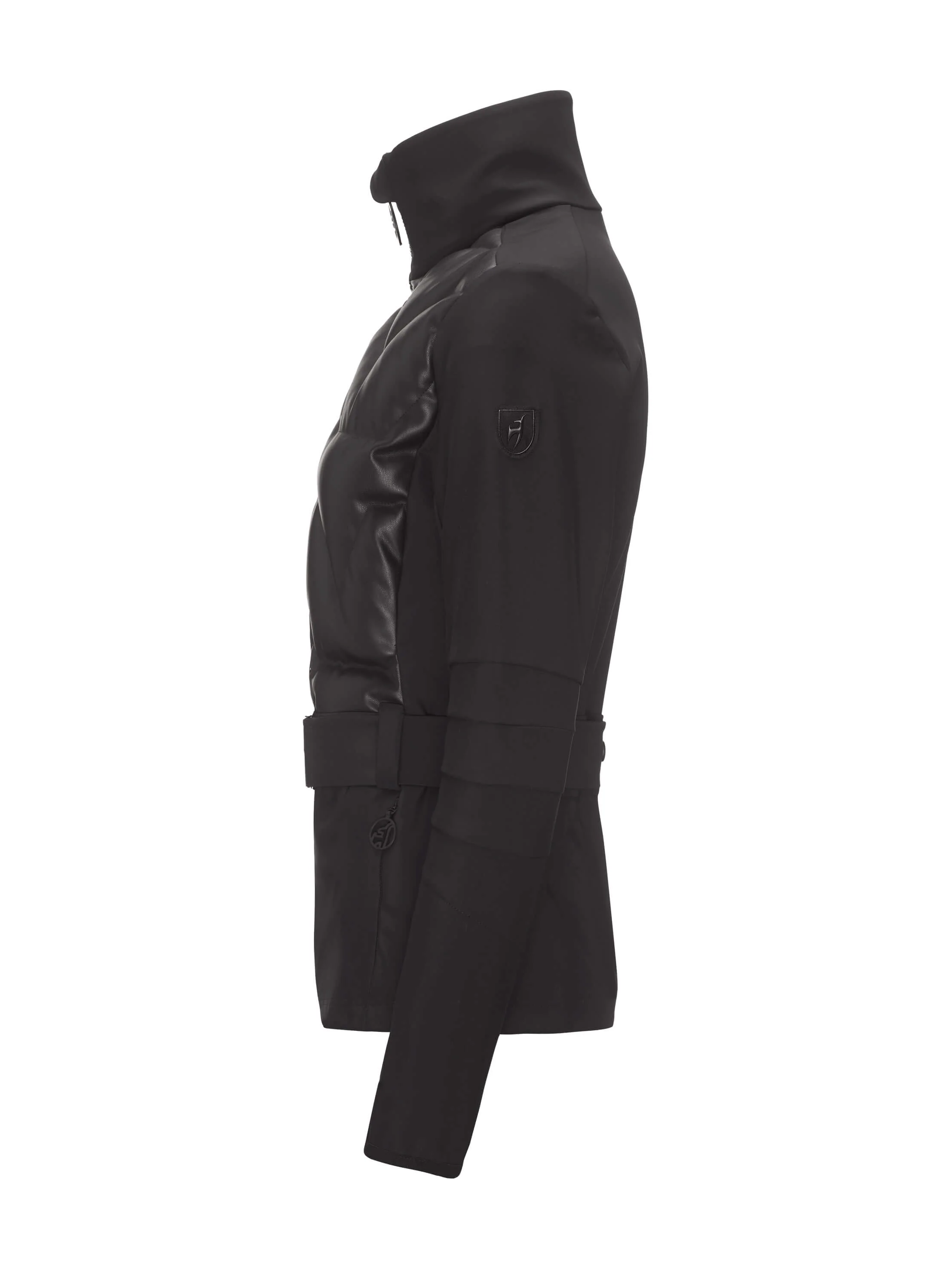 Fashion X Function - the HOLLY FAUX LEATHER light jacket is made for the boulevards! The PrimaLoft® Down Blend keeps you warm while having very low weight. The jacket with a mix out of a 3L softshell fabric and a sophisticated faux leather. This slim fit jacket is perfected with our logo waist belt.