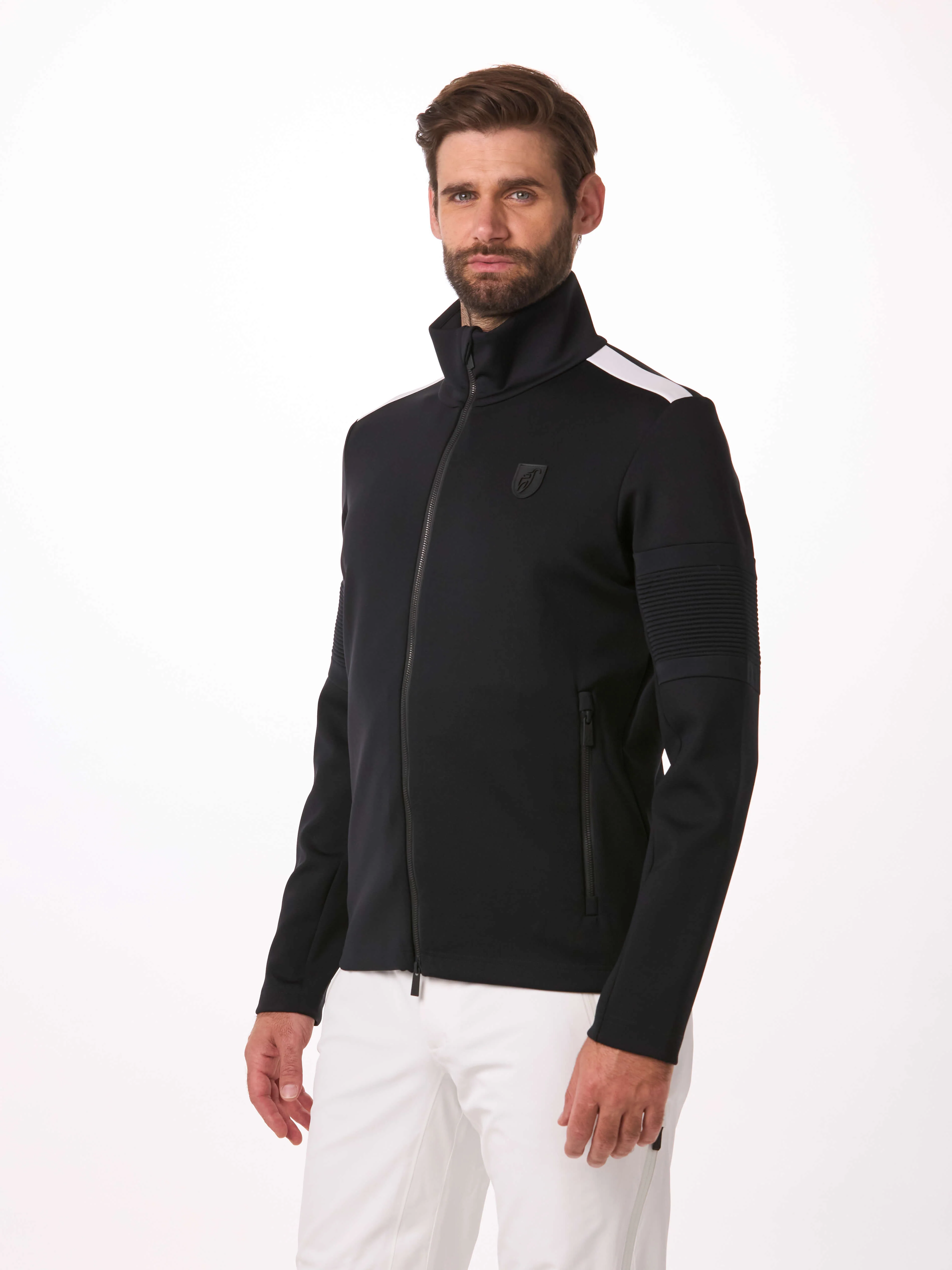 The LEONARD men’s mid layer jacket keeps you warm on cold winter days under our ski jackets with an exclusive and technical compound fabric. This new fabric gives you a very clean and smart look!
