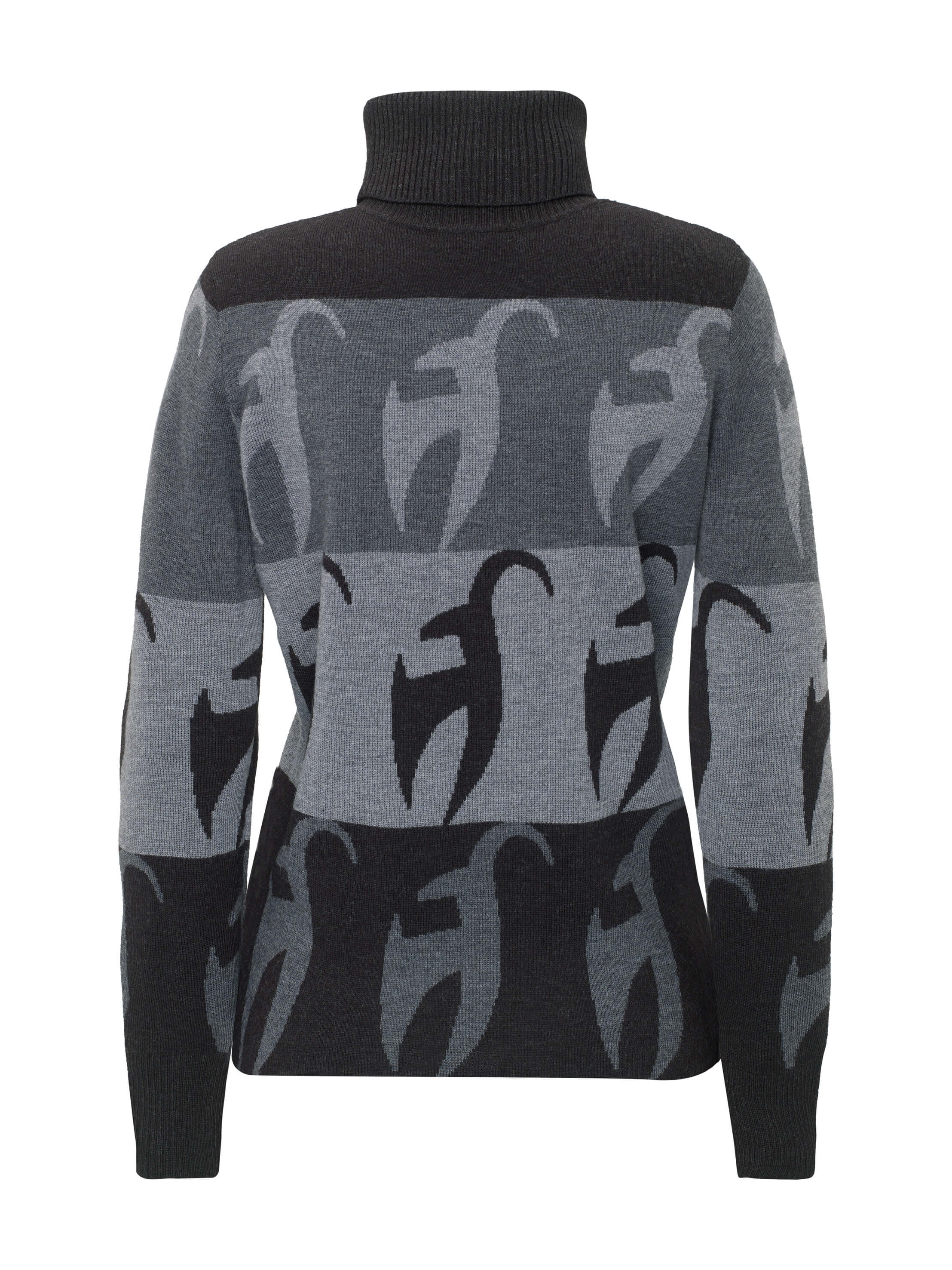 The RAFFAELA women’s merino pullover with a turtleneck showcases a stylish interpretation of color blocking with contrasting Toni Sailer gams inlays. Equally impressive are the natural, highly functional properties of pure merino wool. It is breathable and regulates warmth for consistently comfortable wear in varying temperatures. The extra fine yarn quality of the pullover feels exceptionally soft.